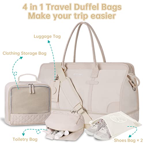 ETRONIK Weekender Overnight Bag for Women, Large Travel Duffle Bag with Shoe Compartment & Wet Pocket, Carry On Tote Bag Gym Duffel Bag with Toiletry Bag, Bag for Hospital 4 Pcs Set, Beige