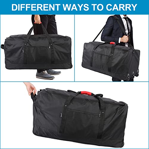 Finnhomy 120L Foldable Rolling Duffel Bag with 3 Wheels, Light Weight Travel Duffel bag with Large Loading Capacity, 32 inch Rolling Duffel bag with Shoulder Strap for Travel Camping Sports