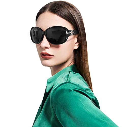 Polarized Sunglasses Womens Trendy Oversized, Big Black Womens Sunglasses Sensitive Eyes, UV Protective Large Sun Glasses, Dark Shades for Women Ladies Sunnies Driving Fishing (Simple Packaging)