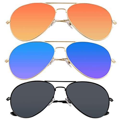 KALIYADI Classic Aviator Sunglasses for Men Women Driving Sun glasses Polarized Lens UV Blocking (3 Pack) 58mm