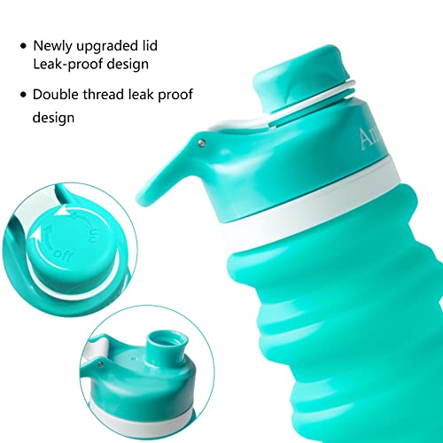 Collapsible Water Bottle Food-Grade Silicone Portable Leak Proof Travel Water Bottle, 18oz (Aqua Blue)